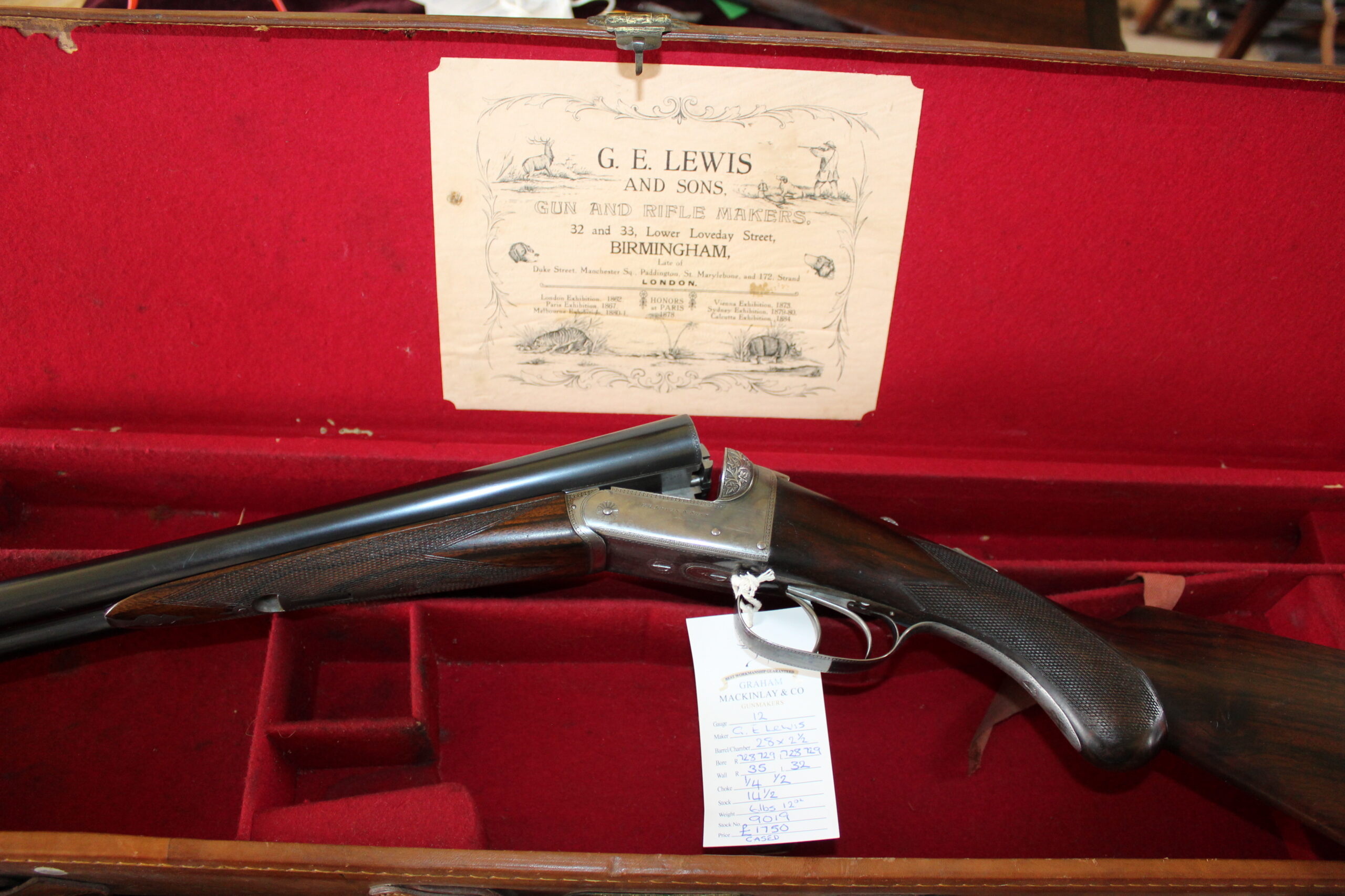 You are here: Home / Lewis / SOLD – 12g A&D ejector by G E Lewis – 28″ x 2 1/2″ barrels