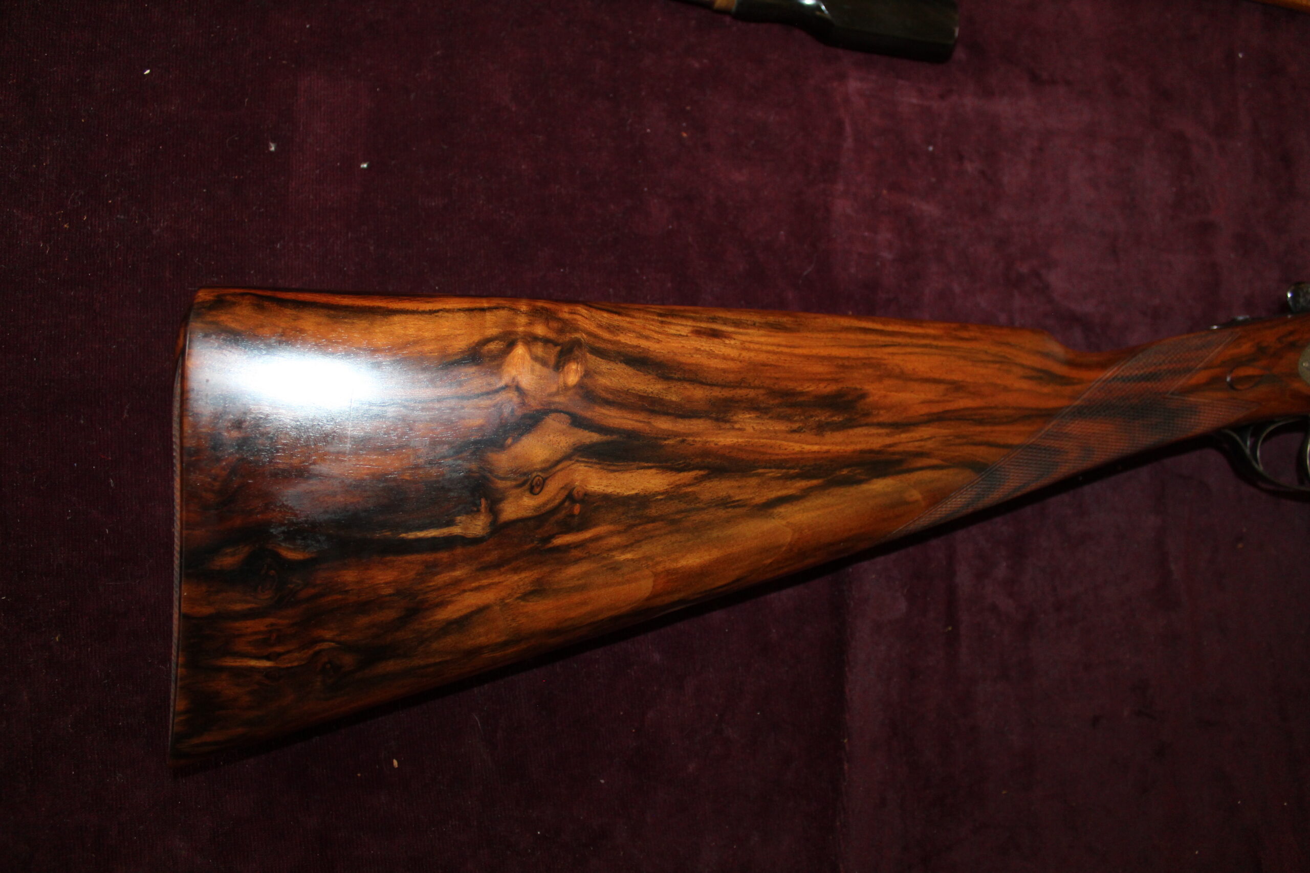 This beautiful Holland sidelock was built circa 1905. Replacement steel barrels, measure 28″ x 2 3/4″ and are in perfect condition. Re-stocked a few years ago, the one-piece stock measures 16 1/4″ and is beautifully figured. Presented in a Holland & Holland case with trade label and charge card with named accessories. I think this gun represents outstanding value.
